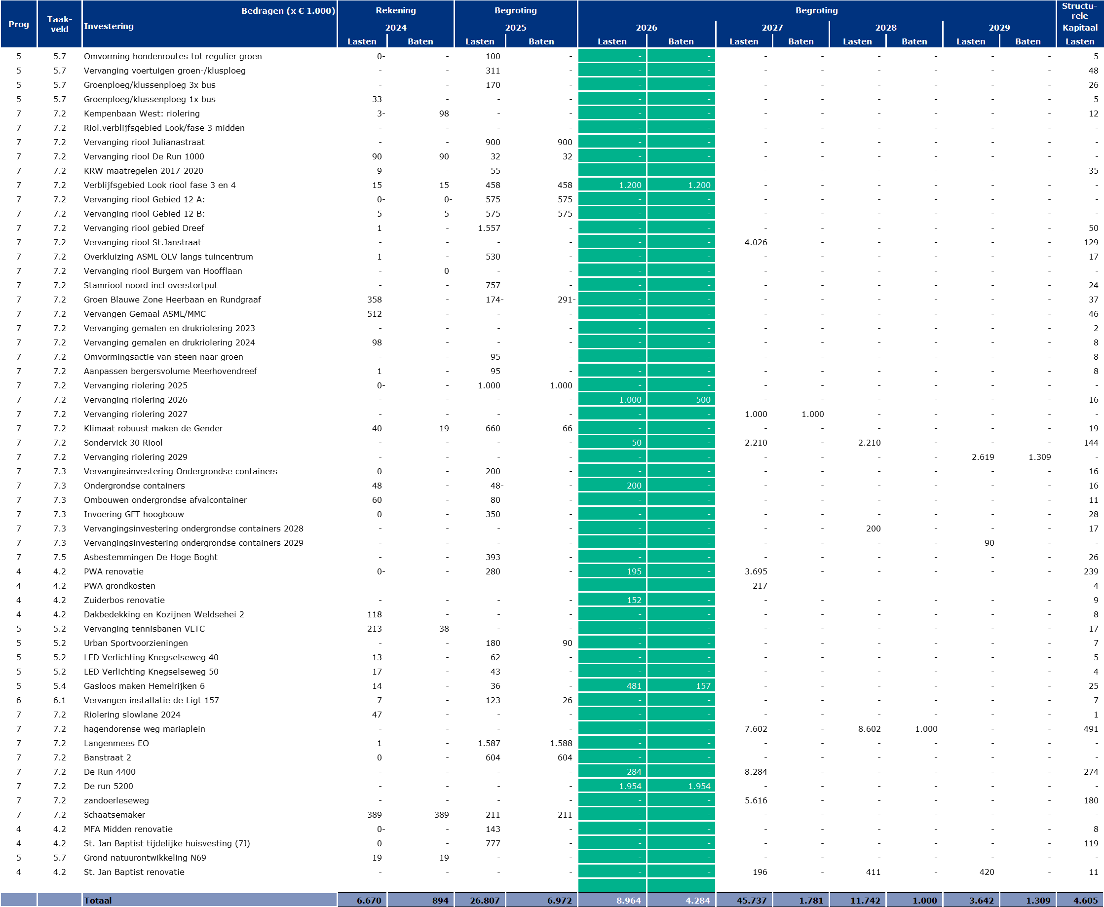 | Vervangingsreserve openbare verlichting | 4.641 | 327 | 93 | 4.875 | 335 | 167 | 5.043 | 342 | 251 | 5.134 | 350 | 301 | 5.183 | 350 | 352 | 5.181 |