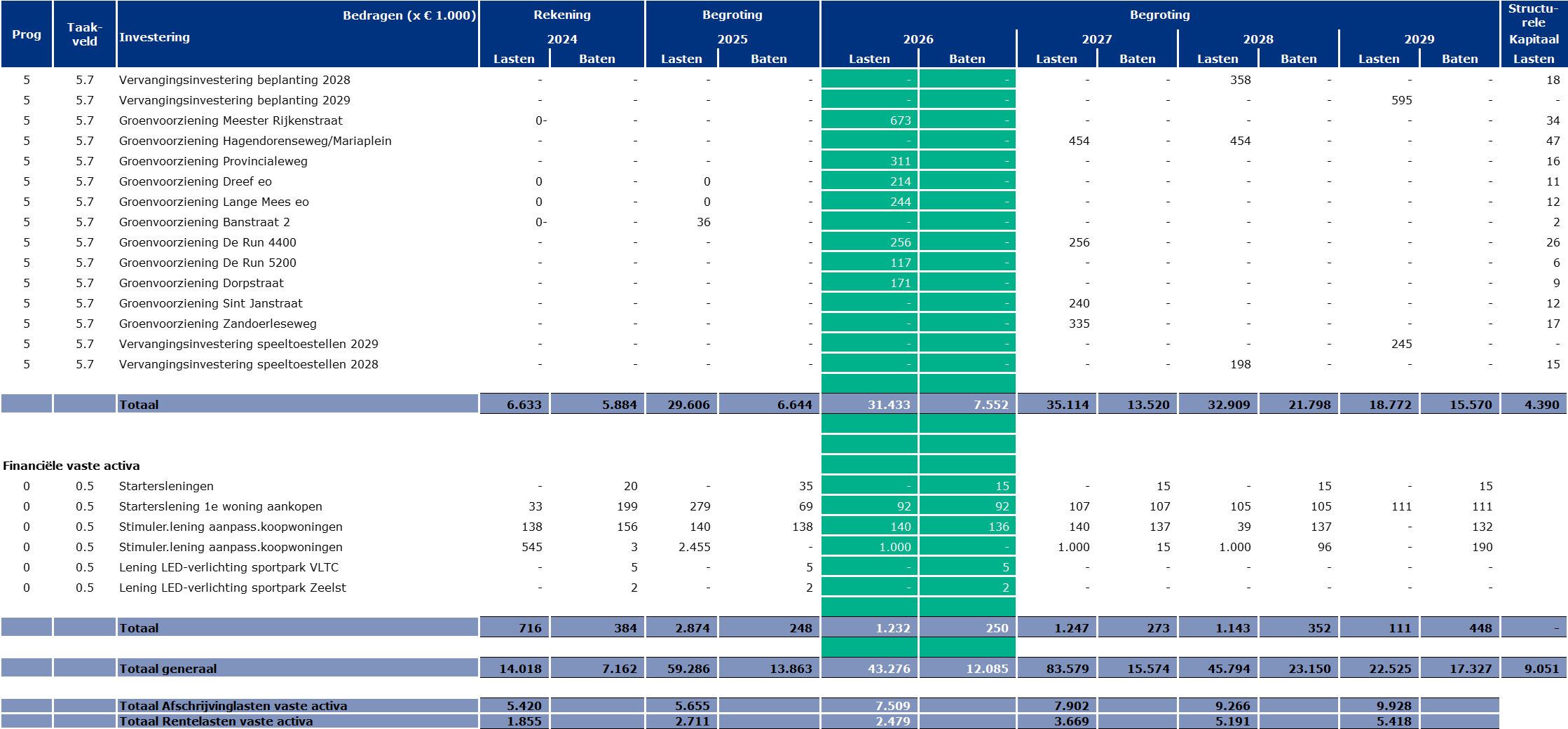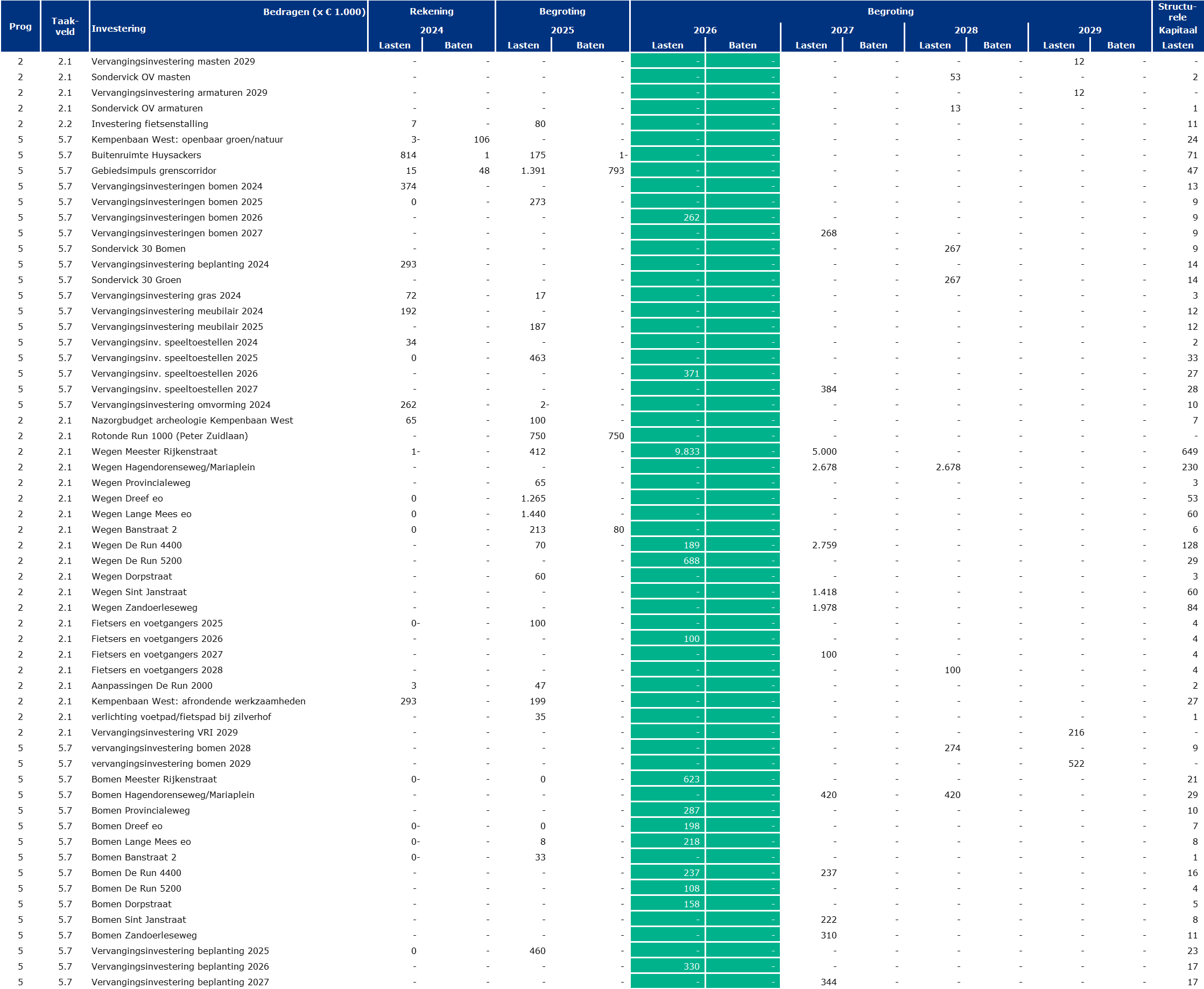 | Vervangingsreserve openbaar groen | 6.076 | 283 | 2.261 | 4.098 | 290 | 167 | 4.221 | 296 | 236 | 4.282 | 290 | 283 | 4.288 | 290 | 335 | 4.243 |